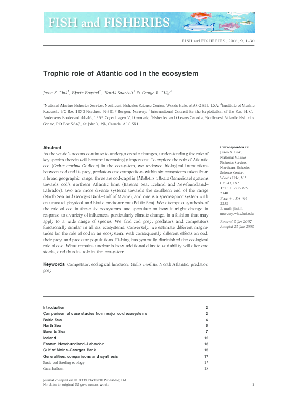 Pdf Trophic Role Of Atlantic Cod In The Ecosystem Henrik Sparholt Academia Edu