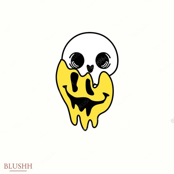 Melting Smiley Skull Svg Png Retro Dripping Happy Face Svg Etsy